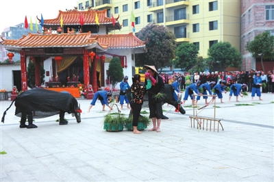 于是,各乡镇各村屯都以水稻种植的不同阶段举办各自的节庆活动,主要分为以下5个阶段:备耕、播种、田间管理、收获、归仓阶段,如今仍然沿袭下来的要数田间管理阶段的“稻神祭”和芒那节活动最为热闹,主要集中在城厢、乔建、南圩一带。