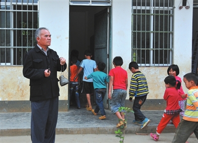 弄义屯有130多户,同大多数农村一样,在这个贫穷落后的村屯里,留守儿童居多。在学校,59岁的彭永伟既是孩子的老师又是家长。只要是上课时间,他一刻也不敢离开,孩子们年纪尚小,父母都不在身边,生怕出什么意外。而在屯里,孩子们则亲切地称彭永伟为爷爷,因为这里的每一个孩子都受到过他的悉心照顾。山里人家的孩子,时常吃不上早饭,饿着肚子便去上学。看到孩子们不到中午就个个无精打采,彭永伟非常心痛。于是,每天早晨就动员老伴儿在家帮煮好早餐,再挑到学校分给大家吃。“再苦也不能苦了孩子。”彭永伟说。