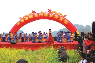 油菜花开春意浓,壮乡喊泉祈福深。3月3日,农历二月初三,天等县举行一年一度的“喊泉纳福”民俗文化活动,吸引着数千名群众前来参与。