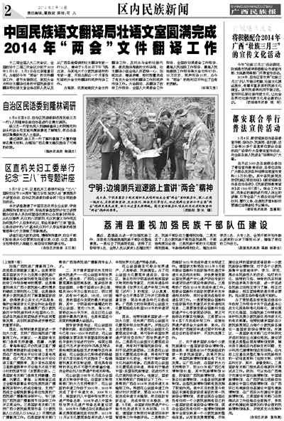 中国民族语文翻译局壮语文室圆满完成 2014年“两会”文件翻译工作