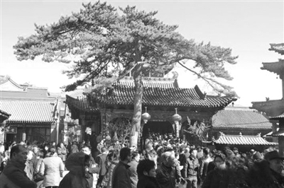 3月15日正值农历二月十五,恰逢周末。天气晴好的佛教圣地山西五台山迎来大批香客前来。被称为“最灵验”的万佛阁(五爷庙)中,几千信众蜂拥而至,大殿前上香祈福的人们排起长队,至少要等候一个小时才能进殿参拜。