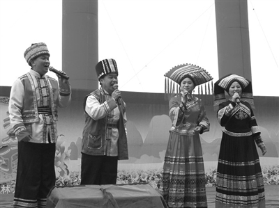 ▲三月三歌圩上,壮家俊哥靓妹在对唱情歌。 韦愿娜 摄影