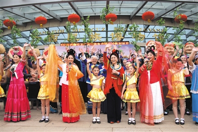 ◀4月2日,在广西民族博物馆活动现场,五代刘三姐扮演者与小小刘三姐现场传歌,让观众淋漓尽致地感受到“山歌好比春江水”。 本报记者 韦愿娜 摄 |