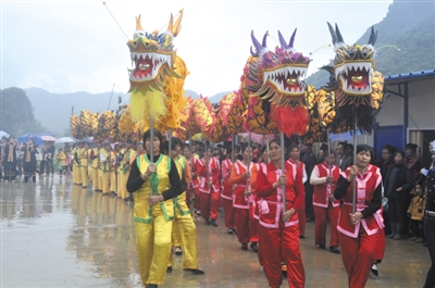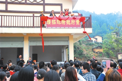 | ▲4月2日,蒙山县在长平瑶族乡举办系列节庆活动庆祝瑶族传统佳节农历“三月三”。图为抛绣球招女婿场景。黄建源 关 新 摄 |