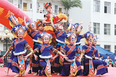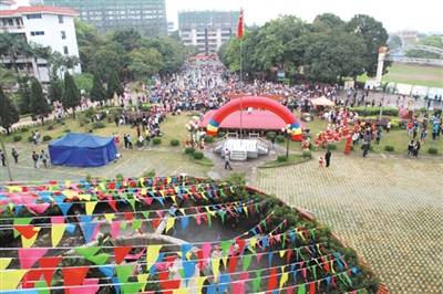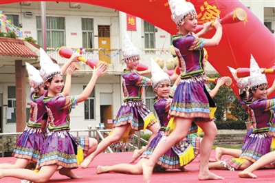 今年,广西壮族自治区政府将“壮族三月三”确定为广西民族传统习惯节日并放假两天,并要求各级政府及有关部门组织引导开展相关的民间活动。在自治区民委、武鸣县人民政府的大力支持下,该校充分利用自身在民族文化艺术传承方面的丰富资源和地处壮乡武鸣的地域优势,配合2014年中国壮乡·武鸣“三月三”歌圩暨骆越文化旅游节的开展,于农历三月初三当日在校园内组织开展民族文化校园开放日活动,活跃节日气氛,展示学校在传承民族文化、发展民族教育、促进民族团结进步方面的成果。