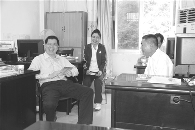 在靖西县广电局的调研结束后,王泉忠又前往该县民语办调研。通过调研得知,靖西县民语办虽然单位小、人员少,但却能够紧密结合工作实际扎实开展教育实践活动,组织人员编印了《靖西县壮语方言志》、《靖西壮语方言——谚语、俗语、歇后语选集》(壮汉文版)、《靖西民间山歌选集》(壮汉文版)等,教育实践活动开展有声有色,各项工作成效显著,在去年全县绩效考评中获得了“优秀”等次。王泉忠对靖西县民语办所取得的成绩给予了高度赞扬,他同时要求靖西县民语办在今后的工作中要多加强请示和汇报,强化横向沟通与联系,逐步解决民语工作当中遇到的困难和问题,续写靖西民语事业的“辉煌”。