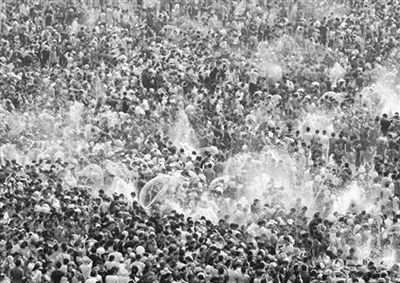 4月15日,数万名当地群众和游客在云南省西双版纳州景洪市泼水广场上泼水狂欢。当日是2014年西双版纳泼水节,也是傣历1376年新年节系列活动的最后一天,数万名当地群众穿上节日盛装,和外地游客一起在云南省西双版纳傣族自治州景洪市互相泼水,互祝吉祥、幸福、健康。泼水节是傣族人民送旧迎新的传统节日,已有上千年历史。