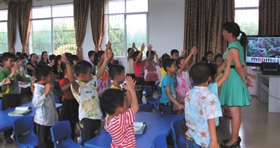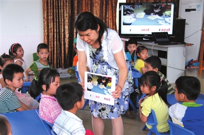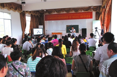 由自治区教育厅主办、广西壮文学校承办的此次培训班,是今年全区壮汉双语学前教师“快乐壮文”教学培训班的第一期。来自南宁、防城港、钦州、崇左等地38所壮汉双语小学有关学前教师共76人参加了此次培训。在当天上午的培训班上,庆乐小学3位幼儿园教师对该校附设幼儿园的小朋友进行现场授课。通过多媒体展示、趣味游戏、图文并举、师生互动、诵读儿歌等多种学前儿童喜闻乐见的方式,在充满欢声笑语、精彩纷呈的课堂氛围中,让学前小朋友们在快乐中学习壮文ad、aed、ed、ag、aeg、eg、ak、aek、ek等韵母。充满欢乐的课堂教学演示,也让到场跟班研修的教师们看得津津有味。