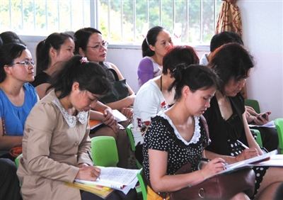 据悉,为提高壮汉双语教学学前教师专业水平,为壮汉双语幼儿园培养合格的双语师资,今年,自治区教育厅将举办4期全区壮汉双语学前教师“快乐壮文”教学培训班。“快乐壮文”系列培训班将采取分批派专家到定点壮汉双语小学和幼儿园现场指导学前壮语文教学活动,有关县(市、区)壮汉双语学前教师到场跟班研修等方式,对全区有关县(市、区)壮汉双语小学学前教师或壮汉双语小学所在乡镇的幼儿园(含民办)教师共计224人进行“快乐壮文”教学、幼儿壮语文教学活动方法等方面的培训。据周克依介绍,除第一期外,其他3期培训班将在覃塘区、环江毛南族自治县、德保县等地举行。其中,第二期安排贵港、来宾等地34所壮汉双语小学有关学前教师共68人,于5月15至18日在贵港市覃塘区蒙公乡古山小学举行;第三期安排河池市17所壮汉双语小学有关学前教师共34人,于6月19 至22日在河池市环江毛南族自治县清潭小学举行;第四期安排百色市23所壮汉双语小学有关学前教师共46人,于10月16至19日在百色市德保县壮文学校举行。