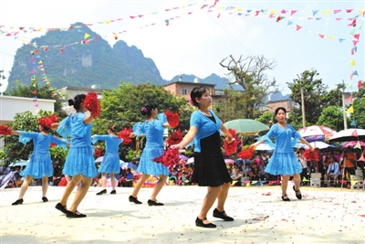 下贵屯现有100多户人家,近几年来,该屯群众依靠党的富民政策,通过自己的勤劳双手走上了脱贫致富之路。目前,全屯90%农户住上了新楼房,户户门前硬化路直通村外,另还兴建了文化室、篮球场,成立了业余文艺队、篮球队、龙狮表演队,生活日益甜蜜。为感谢共产党和政府的关怀,该屯群众特选5月1日劳动节日,以讴歌党、讴歌社会主义、讴歌改革开放、讴歌伟大祖国为主旋律的文艺汇演欢度“五一”国际劳动节。此次活动,加深了群众对党的理论、路线、方针的理解,营造了跟党走的浓厚氛围。