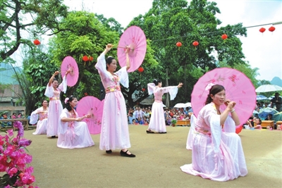 进入春暖花开的4月,又是渊远流长的龙州下冻镇中越边界两庄村农历三月传统歌坡节的日子,新历4月26日,该村农历3月27传统歌坡节依期举办,吸引了全县12个乡镇60多个业余文娱团体及30多名山歌迷汇集两庄村摆擂台,人们以山歌对唱、以村为单位组织节目表演的形式欢度歌坡节。健康向上、内容丰富的文艺节目和悠扬动听的山歌,营造了歌坡节深厚的氛围。两庄村的歌坡节不仅吸引了内地群众,亦吸引邻国越南的边民前来观看,成为了中越边界两庄村传统节日独特的风情,好不热闹。