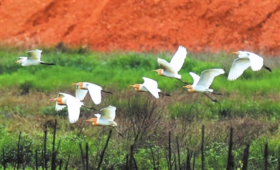 这是4月26日在融安县长安镇红卫村拍摄的图片。眼下,在融安县的乡村随处可见成群的白鹭与人们和谐相伴的场面,白鹭在水田里、树木上、渔塘边,或觅食,或飞舞,或憩息,显现出一派“青山秀水白鹭飞的乡村美景,良好的生态环境引来了白鹭“安营扎寨”。