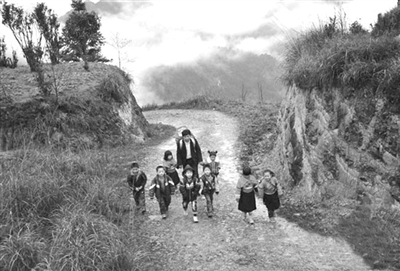 这是一群留守儿童,父母都跑到山外打工去了。因为山里除了一些树木,便是满眼的石头了,祖祖辈辈就靠从石头缝里抠出一点点的泥土,种上几棵玉米,养上几头牛,一年到头,勉强糊糊口。房子是祖祖辈辈留下的石头垒的,坚硬无比,但苔痕斑驳,瓦片有些残缺不全。山里已经有了学校,从课本上已经知道高楼大厦,也有人在老师的带领下走到了山外,看到外面的世界很精彩,于是,原本老老实实的山里人开始有些不安了,一个约着一个,纷纷跑到山外打工挣钱,想改变祖祖辈辈一成不变的生活。家里只留下衰老的老人和还在读书的孩子,每月按时寄些生活费。