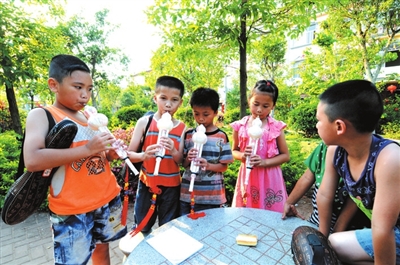 不一会,又来了三四个拿着葫芦丝的孩子。“我们二年级了,班里有16个同学在学习吹这个呢。”穿着粉红色裙子的吴华怡有点自豪地说,和她一起练习的黄品东、吴涛、邓灵盛等小朋友,都是她的同班同学。