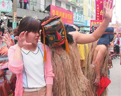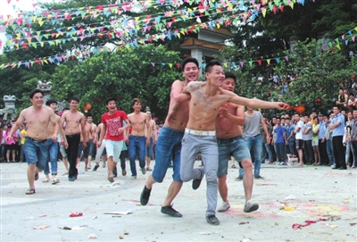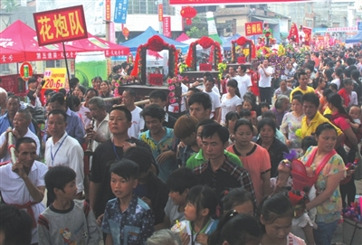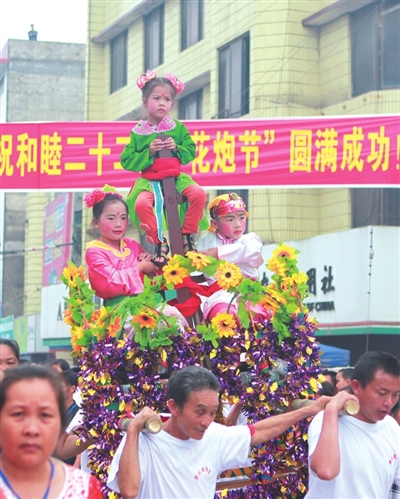 今年是和睦镇的第二十二届花炮节。花炮节的重头戏是游行和抢花炮。