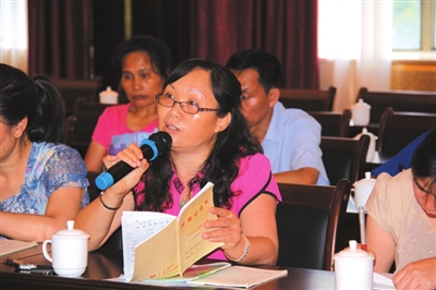 观摩课结束后,活动组委会组织召开了观摩课评议研讨会。会上,与会老师和专家畅所欲言,充分肯定两位老师的教学方法,也提出了自己的看法和建议。同时,大家也对在新形势下,如何做好壮汉双语教育二类模式教学实验工作,提高壮汉教学质量和水平等问题进行了探讨。广西民族教育发展中心译审零兴宁针对壮汉双语二类模式教学的实施回答了各位教研员、老师的提问。通过研讨、交流,大家对壮汉双语二类模式教学的目的、意义有了进一步的认识和理解,坚定了将来更好地开展双语教学工作的信心。