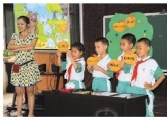 在这两节壮语文教学示范课中,两位老师都利用激趣导入,揭示课题的方法创设教学情境;课堂结构严谨,开头以唱歌导入,结尾以唱歌结束,首尾照应。在教学过程中,通过展示生动的动物卡片,让学生拼读音节,认识生字,有效地激发了学生的学习兴趣,活跃了课堂的学习氛围。这种科学的课堂教学设计及生动活泼的教学组织形式,让在场的老师、专家们感到耳目一新,也充分展示了“快乐壮文”的教学理念,得到了现场老师、专家的好评。