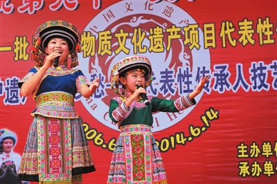 6月14日是全国第九个“文化遗产日”。当天上午,隆林在该县城的休闲广场开展“保护遗产留住乡愁——代表性传承人技艺展演”宣传活动。