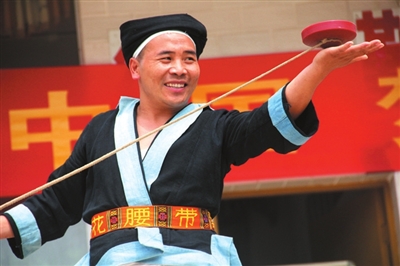 三十出头,浓眉大眼,身板壮实,身高一米五多的白裤瑶青年何光斌,玩陀螺玩出了花样,玩来了一顶“陀螺王”的帽子。看过何光斌陀螺表演的人都说:他的“陀螺王”这顶桂冠,是靠实力挣来的,名符其实。