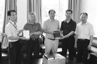 近日,中国民族语文翻译局副局长李万瑛深入武鸣、上林等县,就民族语文广播影视工作情况进行调研,并将该局编撰的《现代汉壮词汇》等壮文图书送到广西壮文学校、武鸣县广播电视局、上林县民语局等基层民族语文工作单位。