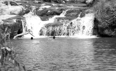 那个水潭约五个平方,潭底沉淀了层薄薄的细沙,周围都是光滑的青石。儿时,也就是我的少年时代,我和一些同伴能在潭里泡一个下午,直到皮肤变得发白起皱、眼睛泛红。而现在的这些少年好像是我那个时代的缩影,他们肆无忌惮地在水里推挤打闹,甚至比试把头扎进水里看谁憋得更久。他们有的傻乎乎的,有的则耍小聪明,一个黑黝黝的小子在扎进水里十几秒后把头露了出来换了口气又重新扎了进去,另一个始终没有耍任何把戏,直到憋不住了,头倏地冒了出来,激起淋漓的水花。然后那个黑黝黝的小子就咧嘴大笑:“我赢了,你输了。”
