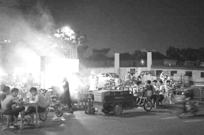 晚上,到球馆打球锻炼身体。十点之后回家,到小区附近的十字路口时,见到马路夜市摊正热火朝天地烧烤着。烧烤摊冒出滚滚浓烟,经过旁边便被呛得咳嗽不停。奇怪的是,这种安全卫生毫无保障的垃圾食品,以之为美味者竟然大有人在,彻夜有食客光顾,谈笑声、猜码声通宵达旦。