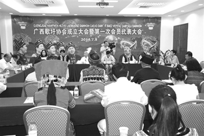 本报讯(记者 韦愿娜 文/图)7月8日,广西歌圩协会成立大会暨第一次会员代表大会在南宁召开。来自南宁、柳州、河池、玉林、百色、来宾等市的30多名会员代表出席了成立大会。