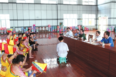 7月11日下午,自治区民委主任卢献匾(右三)一行到广西民族中等专业学校,调研少数民族歌手班师生为赴台湾交流编排的民族歌舞演出节目准备情况。卢献匾对节目进行了点评和指导,并对节目的编排提出了明确的要求。