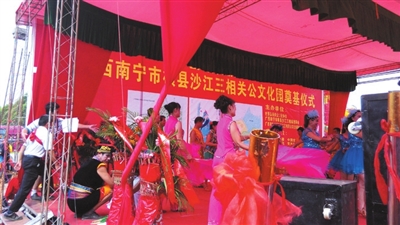 7月12日,横县石塘镇沙江三相庙,艳阳高照,彩旗飘扬。由世界弘扬关公文化协会和横县石塘镇沙江三相圩逢理事会共同主办的“2014年横县壮族三相圩逢暨关公文化旅游节”在这里隆重举行。同时,投资6000万元的横县关公文化园也于当天正式开工。