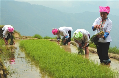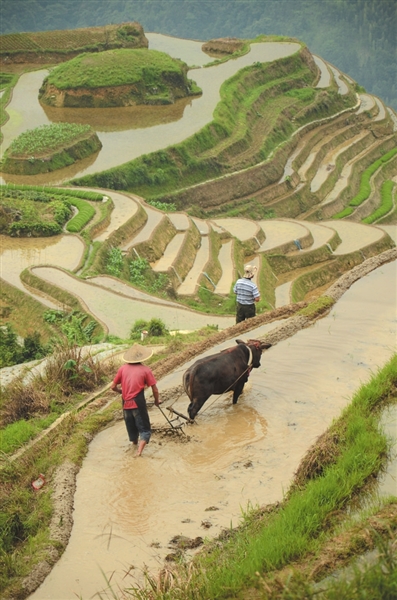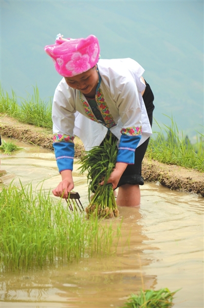 声声龙脊欢歌祈求着一年的风调雨顺,簇簇青苗昭示着壮族人民对幸福生活的美好向往。6月7日,伴随着鞭炮声和锣鼓声, 2014年龙胜各族自治县龙脊梯田梳秧节在龙脊镇平安村拉开帷幕。