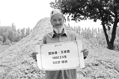 新疆莎车县阿热勒乡塔热木博依村住着一位远近闻名的老寿星—图如普·艾麦提。