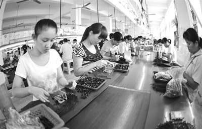 今年以来,罗城仫佬族自治县继续把做大做强工业作为首要任务来抓,大力实施“工业强县”和“农民家门就业”战略,即实现了工业增长,又帮助返乡农民工创业,还为留守儿童留住了妈妈。截至今年6月末,该县规模以上工业总产值8.95亿元,增长20.20%;城镇新增就业1331人。图为8月20日,农村妇女在罗城仫佬族自治县一家电子厂车间忙碌工作。