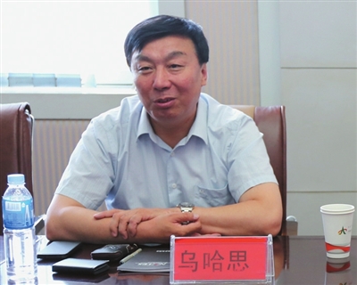 ▲内蒙古电视台蒙古语卫视频道总监乌哈思向调研组描述蒙古语卫视频道的宏伟蓝图。