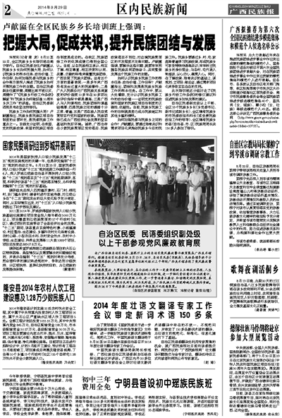 2014年度壮语文翻译专家工作会议审定新词术语150多条