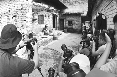 罗城是全国唯一的仫佬族自治县,该县小长安镇龙腾村大勒洞屯、大勒罗屯的原生态仫佬族砖瓦木结构建筑大都为清末所建,极具仫佬族古民居特色,对研究仫佬族建筑文化有着重要的参考价值,也是人们了解、体验仫佬族古文化的一个重要窗口,吸引着众多媒体记者及摄影爱好者前来探访、拍照。图为9月1日,众多摄影爱好者在该县小长安镇龙腾村大勒罗屯拍摄古民居及民俗。(廖光福 摄)