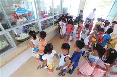 9月1日是2014年秋季学期开学的第一天,柳州市继续推行免费午餐制度,让山区学生能够吃饱吃好。该市融安县还通过补贴厨房工作人员工资和燃料费,让九年义务教育的农村学生午餐质量有保障。