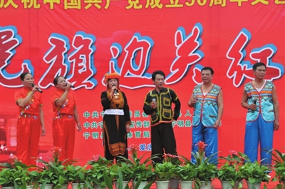 “五十六个星座,五十六枝花,五十六族兄弟姐妹是一家……”一首悠扬欢快的歌曲,从公母山的瑶寨里飘出,唱出了爱店各族群众的心声。