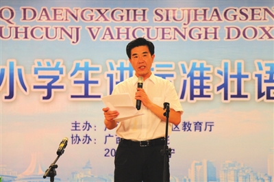 白志繁在讲话中说,壮语是壮族人民重要的思维和交际工具,也是传承、传播壮族文化的重要工具和载体。为了保障壮族学生使用本民族语言文字接受教育的权利,充分发挥壮语作为母语优势开发儿童智力,利用壮语文教学功能提高壮族地区基础教育教学质量,有效传承壮族优秀文化,我区坚持开展壮汉双语教育教学工作已有30多年,取得的成绩可圈可点。特别是近几年来,深化壮汉双语教育改革,科学推进壮汉双语教育科学发展的良好势头,令人欢欣鼓舞!