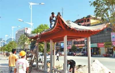 罗城县城 打造仫佬风格公交亭