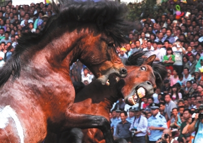 而最惊险刺激的莫过于堪称“世界一绝”的斗马比赛了。来自融水各乡镇的26匹“战马”展开激烈撕杀。赛事引来上万观众围观,欢呼喝彩声此起彼伏,场面蔚为壮观。新华网对本届节庆活动开设专题进行了图文直播,并在广西频道“新华头条”栏目推出。