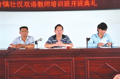 随着民族双语教育规模的扩大,壮汉双语教师出现紧缺,教师培训成了一个急需解决的问题。在去年成功举办第一期壮汉双语教师培训班的基础上,今年10月31日该县又开办第二期壮汉双语教师培训班。本次培训班开设有民族教育理论、壮语文基础知识、壮汉双语教学法等课程,预计到明年1月底结束。受该县教育局分管领导委托,该县教育局语言文字管理股股长石才以在开班典礼上传达了局领导对培训班的要求和希望。