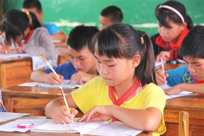 二是以活动促教学,让学生快乐学习,健康成长。近年来,该校由德育处、教导处、少先大队部牵头,常规性地开展相关的教育活动,如每个学期举办壮汉双语优秀作文展一次、举办班级民族文化主题板报一次、读书笔记交流评比一次,学校鼓号队表演一次,每年举办一次壮汉双语朗诵比赛、一次讲壮文故事比赛、一次现场壮汉作文比赛、一届校运动会、一次文艺汇演、一次“六一”游园活动、一次书画比赛,丰富学生的第二课堂活动,给学生提供展示自我的平台,提高学生综合素质,让学校成为学生学习的乐园,成才的摇篮。