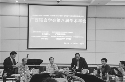 11月28至30日,广西语言学会第八届学术年会在广西民族大学召开。广西语言学会会长、广西经济干部管理学院党委书记韦茂繁,广西民族大学副校长李尚平、自治区教育厅语言文字工作处处长范纯等参加了开幕式并致辞。中央民族大学教授、博士生导师李锦芳,中国社会科学院民族学与人类学研究所研究员、博士生导师蓝庆元,广西民族大学教授、博士生导师蒙元耀等做了主题发言。