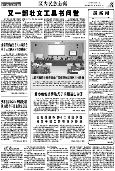 中国民族语文翻译局向广西师范学院赠送壮文译著