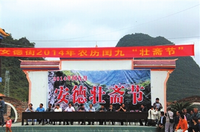 本次壮斋节是安德镇安德街首次举办民间艺术精品盛会,参加展示的有:八仙音响、大小马伞、“南天国”壮斋节牌、大红灯笼、八宝、撑扇、大小提炉、龙头、金瓜、小香炉、抱菩萨、抬龙轿,鼓手、“南天国”侬旗方队、侬智高战车方队、大刀方队、盾牌方队、弓箭方队,抬大士,天女散花、鸟衣裔女、喜庆丰年等系列艺术精品。同时,有民间多名道士和巫师全程开坛公祭。此次活动最精彩的是安德南天艺术团举行的民俗文艺表演,共吸引附近上万名群众到现场观看。