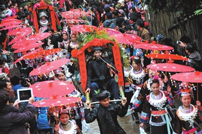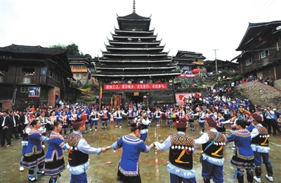 2015年第一天,三江侗族自治县林溪乡冠小屯的鼓楼坪上,村民们与游客唱着耶歌、跳起芦笙舞、品尝侗家美食,欢乐而热闹。冠小百家宴,是三江近几年来挖掘民族文化塑造特色品牌发展旅游的成果之一。近日,三江荣获全国文化先进县,而这是对三江不断打造民族文化品牌、发展民族文化产业取得实效的有力肯定。