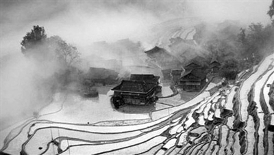 寨子旁的溪水,招来Y君不住称赞。这清亮的山泉,一路叮咚,每过一幢吊脚楼,就有座半米高的小水塔,饮用的水,从水塔接进家去。X君也赞叹,这般好,谁会舍得离开!溪水走过寨子,就流进片片梯田。大山里的夏收夏种,比山外要晚二十来天。故而此时,村人都在地里忙碌。骄阳下,望得到的梯田,禾苗渐次返青。“咕——咕——咕”,家鸡倦了,热闹便留给躲在荒草堆里的野鸡。