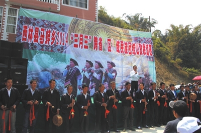 指导和支持民族节庆活动,弘扬民族传统文化。投入80000元,支持普合苗族乡在岩腊村花龙屯和大河村新民屯举办2014年苗族跳坡节活动和在马蚌乡举办“三月三”跨区域民族团结山歌大赛系列活动等。以普合苗族歌舞、足别瑶家“度戒”、那佐壮族“龙崖外”(又名“春牛舞”)为代表的民俗文化在活动中得到广泛宣传。加强了民族文化传承和保护工作,推进民族文化旅游发展。