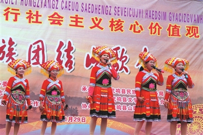 为了更好地宣传贯彻中央民族工作会议精神,凝聚力量共同创建民族团结进步模范区,推进首府南宁创建成为全国民族团结进步示范市,1月29日,由南宁市民委、广西三月三杂志社、南宁市民语委共同主办,武鸣县民宗局(民语局)、武鸣县文联、武鸣县山歌协会承办的“弘扬和践行社会主义核心价值观民族团结山歌会”在武鸣县城文化广场举行。