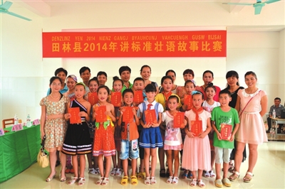 在民族文化传承方面,利周中心校依据当地的北路壮剧把民族文化引进校园,利用少年宫举办了少年壮戏团,让民族文化进到校园,丰富了壮汉双语教学内容。